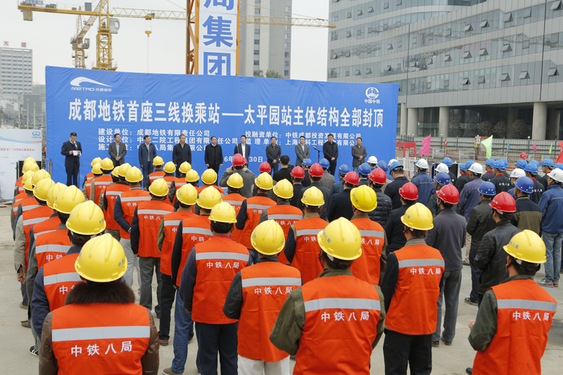 太平園站是成都地鐵在建首座三線換乘站,也是在建規(guī)模最大的車站,施工工藝復(fù)雜,交叉環(huán)節(jié)多,交通疏解難,管線遷改量大,是3號(hào)線、7號(hào)線、10號(hào)線建設(shè)的重點(diǎn)控制性工程。中鐵八局城軌公司項(xiàng)目部超常規(guī)投入,周密協(xié)調(diào),攻堅(jiān)克難,主體結(jié)構(gòu)于10月30日封頂。
