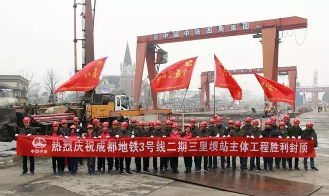 12月14日,中鐵四局成都地鐵3號線二三期工程土建2標(biāo)項(xiàng)目部施工的三里壩站提前30天封頂。
