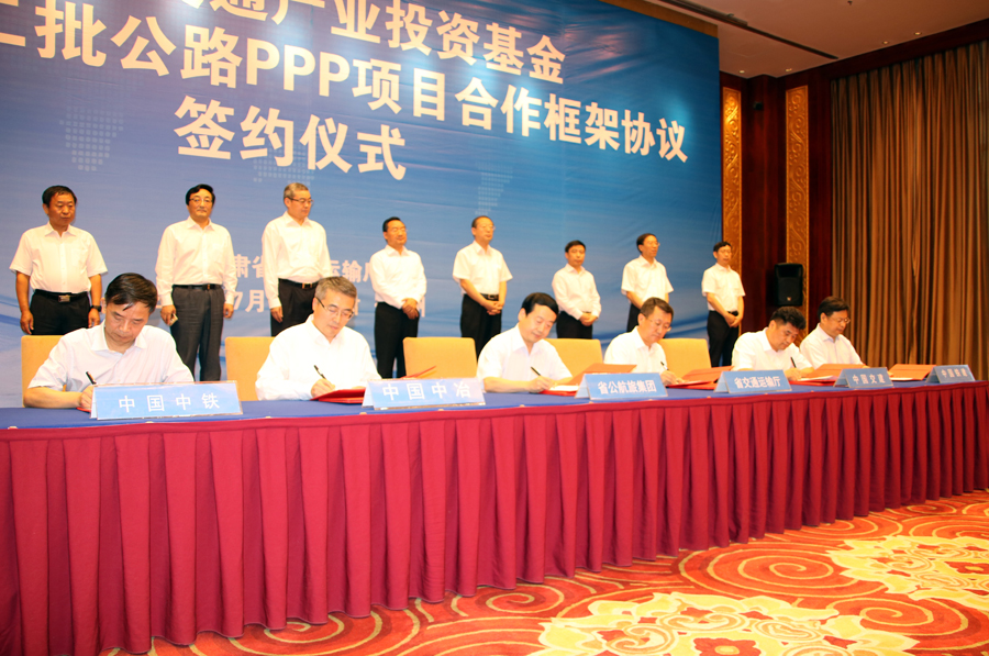 7月7日,甘肅省公航旅集團(tuán)公路產(chǎn)業(yè)基金、甘肅省交通產(chǎn)業(yè)投資基金暨全省第二批公路PPP項目合作框架協(xié)議簽約儀式在第23屆中國蘭州投資貿(mào)易洽談會期間舉行。甘肅省委副書記、省長唐仁健,省委常委、副省長宋亮;中國中鐵財務(wù)總監(jiān)楊良、財務(wù)部副部長楊濤;中鐵城投董事長、黨委書記龍援青出席簽約儀式。