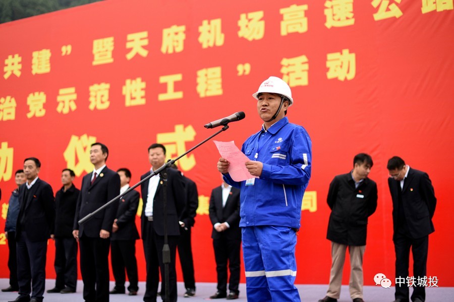 天府機(jī)場(chǎng)高速公路項(xiàng)目工程指揮部指揮長(zhǎng)、黨工委副書記趙愛軍代表指揮部全體黨員干部作表態(tài)發(fā)言。