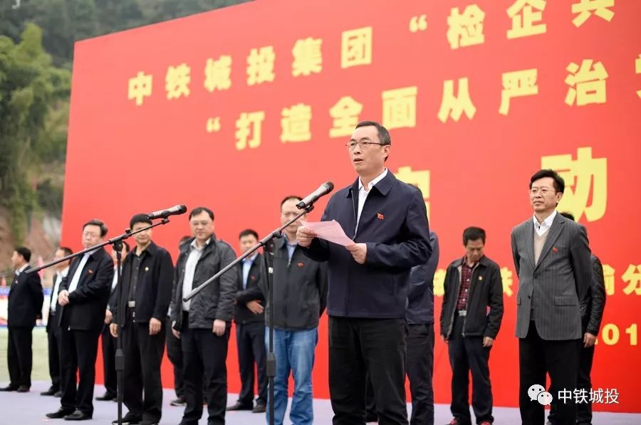 中鐵城投集團(tuán)黨委書記、董事長(zhǎng)龍?jiān)嘧鲃?dòng)員講話。他說,中鐵城投集團(tuán)要把推進(jìn)“檢企共建”和打造“全面從嚴(yán)治黨示范性工程”作為加強(qiáng)和改進(jìn)企業(yè)黨建工作的重要抓手,作為推進(jìn)提質(zhì)增效的重要載體。天府機(jī)場(chǎng)高速公路項(xiàng)目指揮部、各參加單位以及中鐵城投各級(jí)黨組織,要以高度的政治責(zé)任感,勇于擔(dān)當(dāng)作為,推動(dòng)活動(dòng)扎實(shí)開展。一要堅(jiān)持抓實(shí)抓細(xì)不放松,以打造全面從嚴(yán)治黨和廉潔示范工程為抓手,進(jìn)一步細(xì)化實(shí)施方案,讓全面從嚴(yán)治黨各項(xiàng)要求在項(xiàng)目具體化、規(guī)范化、制度化,實(shí)現(xiàn)項(xiàng)目黨建全面進(jìn)步、全面過硬。及時(shí)總結(jié)推廣活動(dòng)中的好經(jīng)驗(yàn)、好做法,帶動(dòng)全公司各工程項(xiàng)目、項(xiàng)目各參建單位形成相互借鑒、你追我趕、共同推進(jìn)的良好氛圍。二要堅(jiān)持落實(shí)責(zé)任不懈怠,嚴(yán)格落實(shí)集團(tuán)公司黨委領(lǐng)導(dǎo)主體、指揮部黨工委組織指導(dǎo)主體、各標(biāo)段黨組織責(zé)任主體的基本職責(zé);各級(jí)黨組織書記要切實(shí)履行第一責(zé)任人責(zé)任,相關(guān)責(zé)任人要認(rèn)真執(zhí)行“一崗雙責(zé)”;各級(jí)黨組織要制定黨建工作責(zé)任清單,細(xì)化到人、量化到崗。堅(jiān)持用責(zé)任制層層傳導(dǎo)壓力,形成責(zé)任明確、協(xié)調(diào)有效的工作局面。三要堅(jiān)持密切聯(lián)系不松勁,主動(dòng)加強(qiáng)與鐵檢機(jī)關(guān)的溝通和聯(lián)絡(luò),全力配合鐵檢機(jī)關(guān)在項(xiàng)目開展預(yù)防職務(wù)犯罪監(jiān)督、調(diào)研等工作,認(rèn)真聽取鐵檢機(jī)關(guān)提出的廉潔風(fēng)險(xiǎn)防控意見建議,拓寬反腐倡廉工作思路,力爭(zhēng)取得共建實(shí)效。四要堅(jiān)持統(tǒng)籌協(xié)調(diào)不失衡,以活動(dòng)的開展保障項(xiàng)目建設(shè)在安全、質(zhì)量、工期、效益等方面取得好成績(jī),以施工生產(chǎn)的優(yōu)質(zhì)成果,檢驗(yàn)活動(dòng)的實(shí)際效果,做到兩手抓、兩不誤、兩促進(jìn)。講好中國(guó)中鐵和中鐵城投故事,提升品牌影響力,以現(xiàn)場(chǎng)促經(jīng)營(yíng),為公司市場(chǎng)開發(fā)貢獻(xiàn)力量。